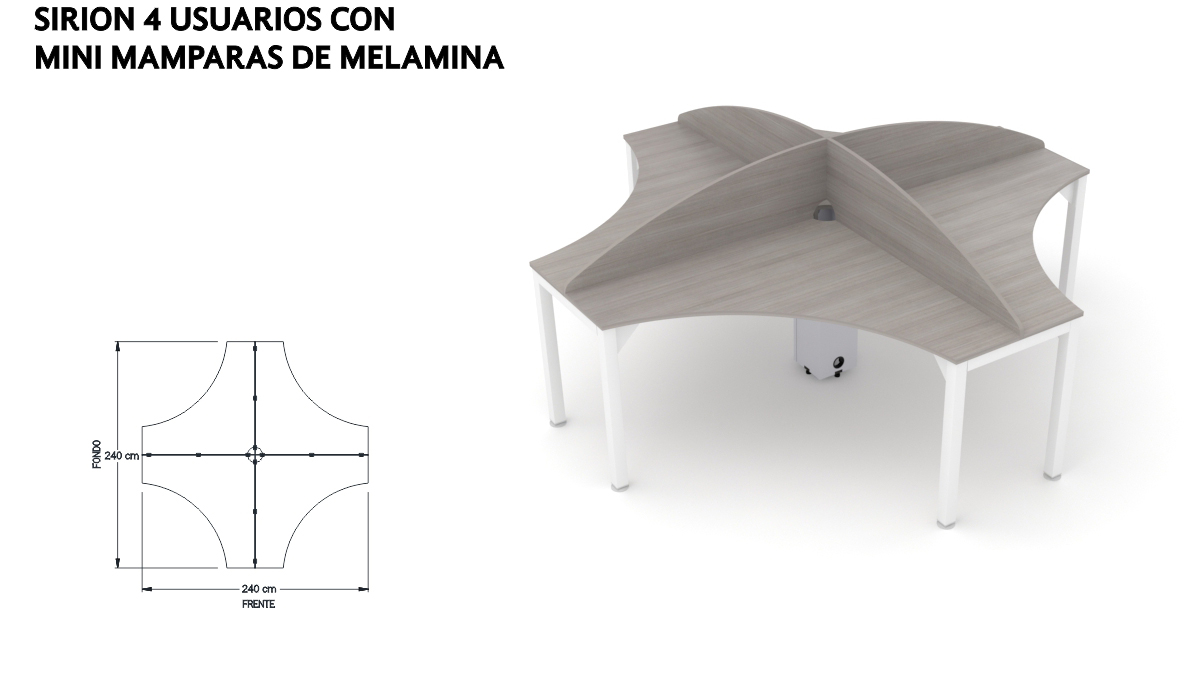 4 USUARIOS CON MINI MAMPARAS DE MELAMINA
